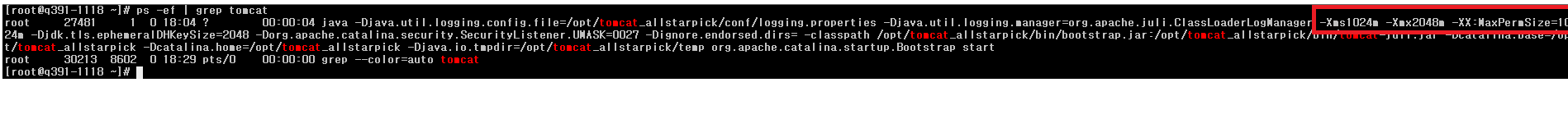 ps -ef | grep tomcat JAVA 메모리 옵션 확인