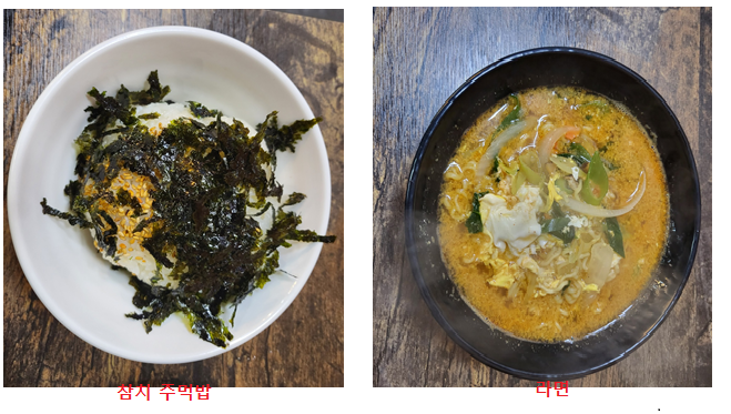 저는 참치 주먹밥이랑 라면 먹었어요!