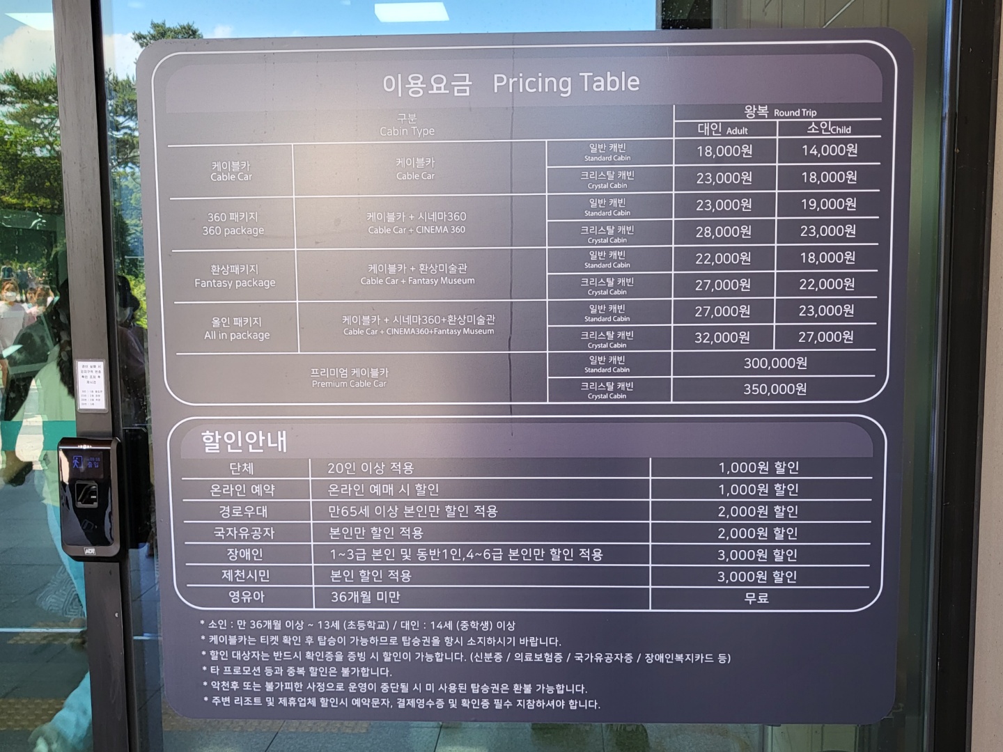 ㅇ크리스탈 캐빈 : 대인 20,000원 / 소인 15,000원