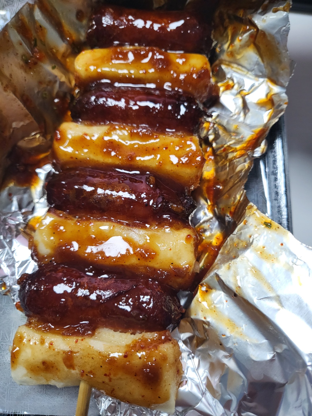 추가로! 스팸넣은 계란말이 김밥 + 소떡소떡도 같이 먹었습니다 ㅎㅎ