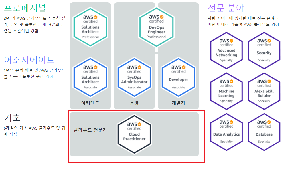 위에 그림보시면, AWS 기초 자격증이라고 생각하시면 됩니다.