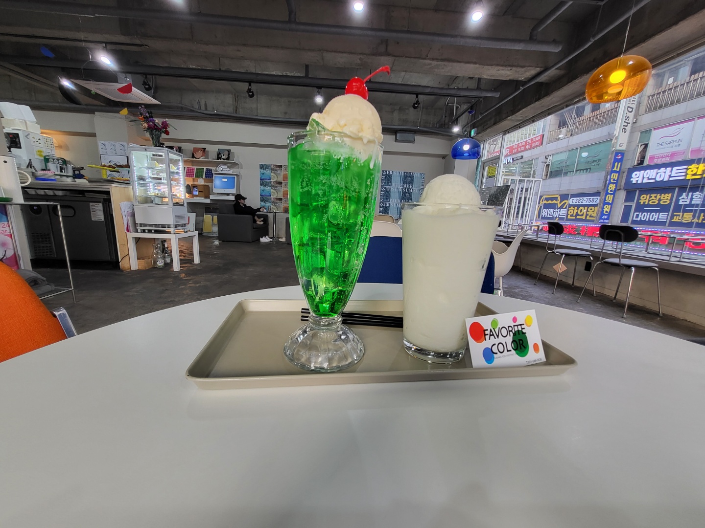 저희는 멜론소다랑 플레인 요거트 마셨습니다!