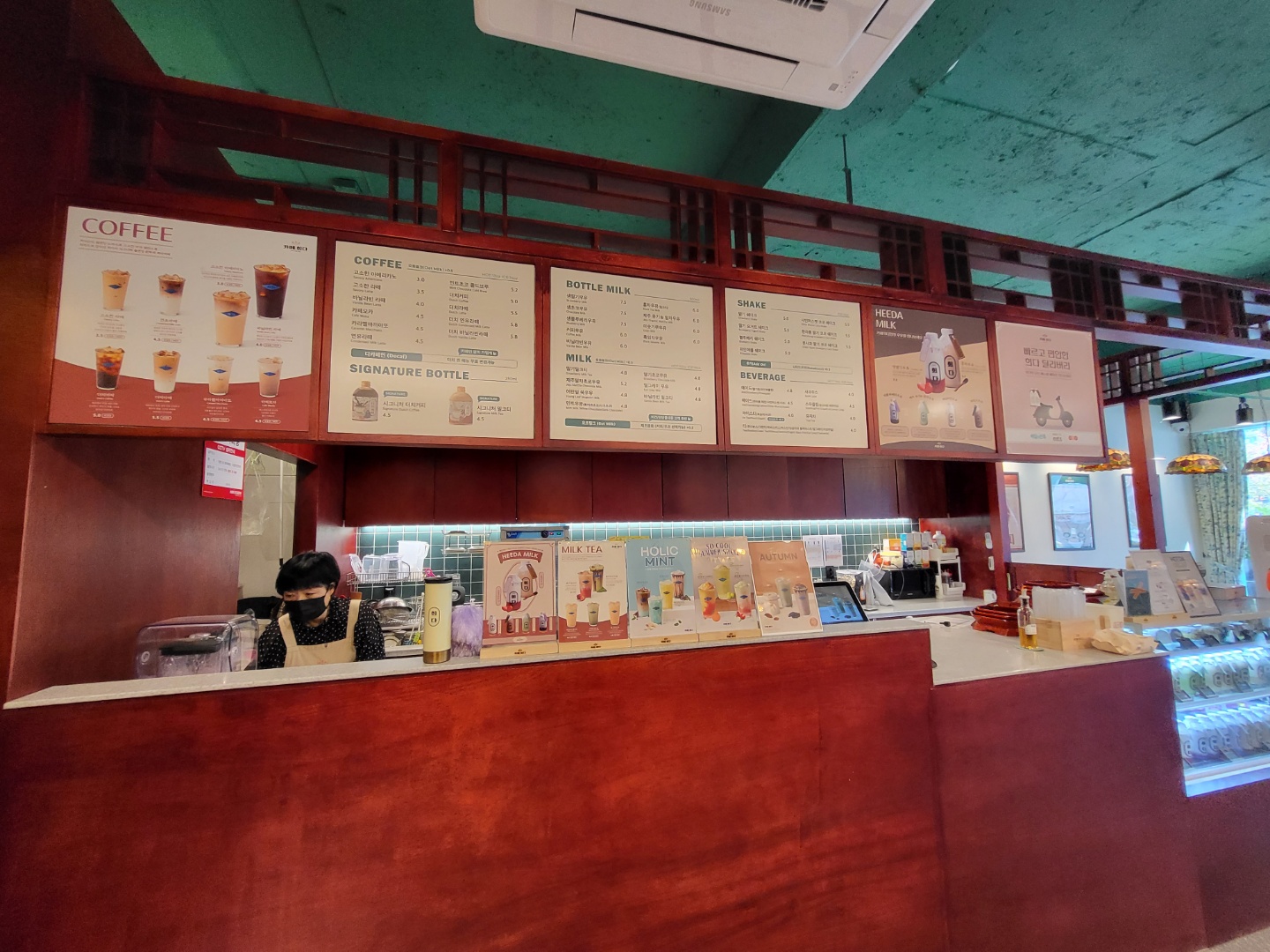메뉴는 우유 말고도 다양한 커피와 먹거리가 있어요