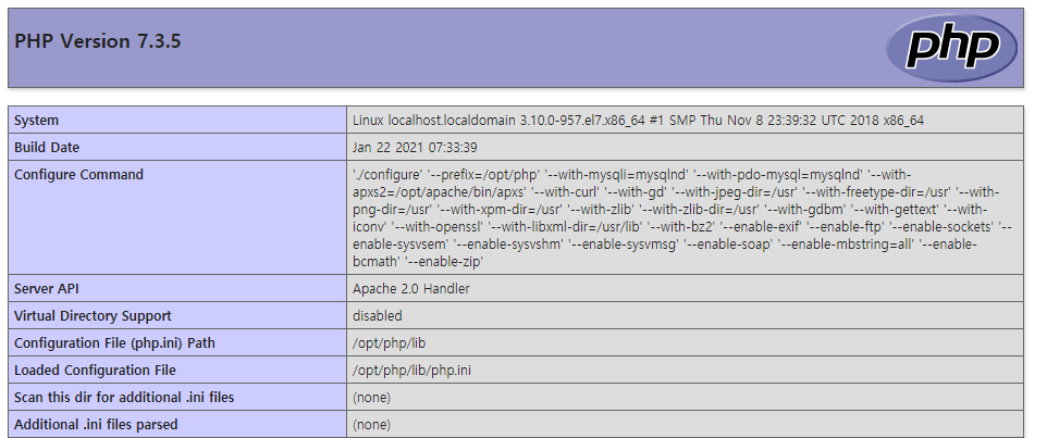 DocumentRoot 웹 경로의 PHP 연동이 되었는지 확인해보자