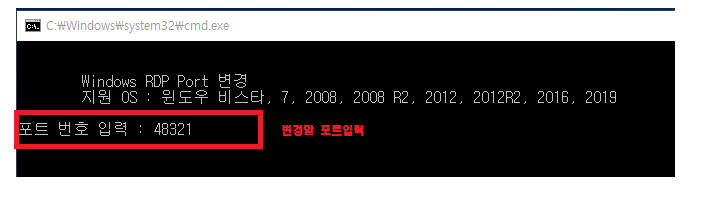 ㄴ %port% 입력한 포트로 레지스트리 원격포트 변경