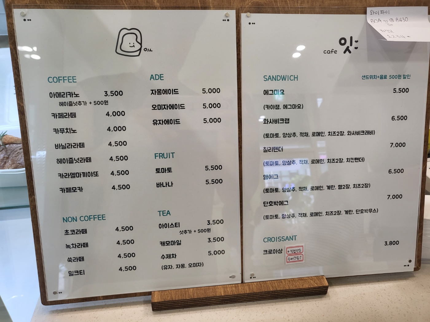 메뉴는 커피뿐 만 아니라 샌드위치도 판매하고 있어요 ㅎㅎ