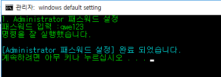powershell.exe -command write-host -fore Cyan [Administrator 패스워드 설정] 완료 되었습니다.