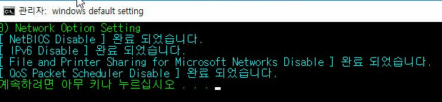 powershell.exe -command write-host -fore Cyan [ File and Printer Sharing for Microsoft Networks Disable ] 완료 되었습니다.