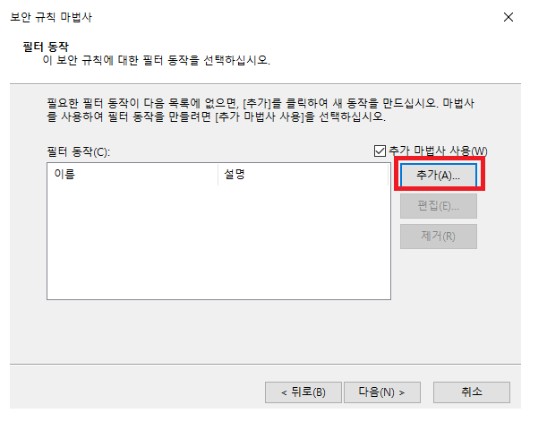 윈도우 방화벽에서도 IPSEC 방화벽을 이용해서 데이터 암호화 방식을 이용하여 허용 / 차단을 진행할 수 있습니다.