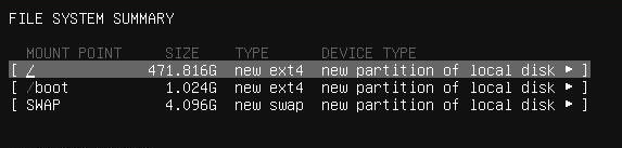 파티션을 설정하게 되면 FILE SYSTEM SUMMARY 밑의 정보들이 확인됩니다.