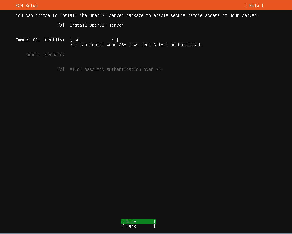 Hostname(호스트명)은 우분투 서버가 설치되었을 때 서버 이름입니다. 원하는 Hostname을 입력하시면 됩니다.