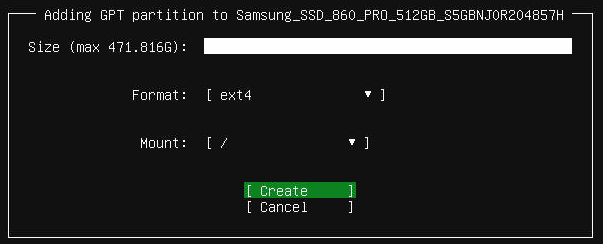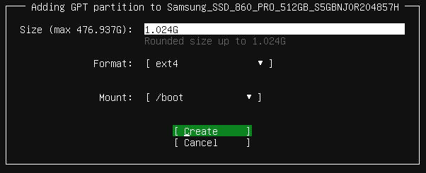 저의 경우 /boot (1GB), /swap (4GB), / (나머지)로 설정 하였습니다.